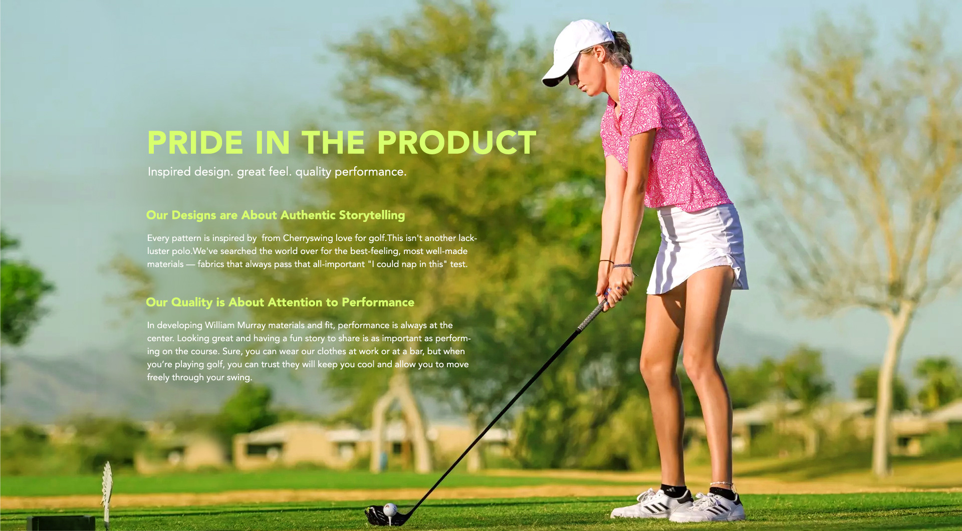 When I first clumsily swung a golf club on a sunny spring afternoon when I was 9 years old, I think I just fell head over heels for golf. Even though swinging the club isn't hard for me anymore now, I really enjoy walking among the green golf holes and having all the fun that golf gives me. But when I took my 9-year-old daughter to play golf, I noticed that golf clothes these days often lack personality and style. I was hoping for a kind of golf outfit that could be comfy for playing golf and also show the unique charm of every woman all the time. This wish of mine gave me the idea to start the Cherryswing brand. I decided to use my expertise to serve my hobby. I wanted to combine my love for golf and my pursuit of fashion, to make a special fashion world for all the women who love golf. So Cherryswing came into being. It's not just a brand, it's a story about dreams, courage and self-expression. I also really want to make a special fashion world for women who love golf.