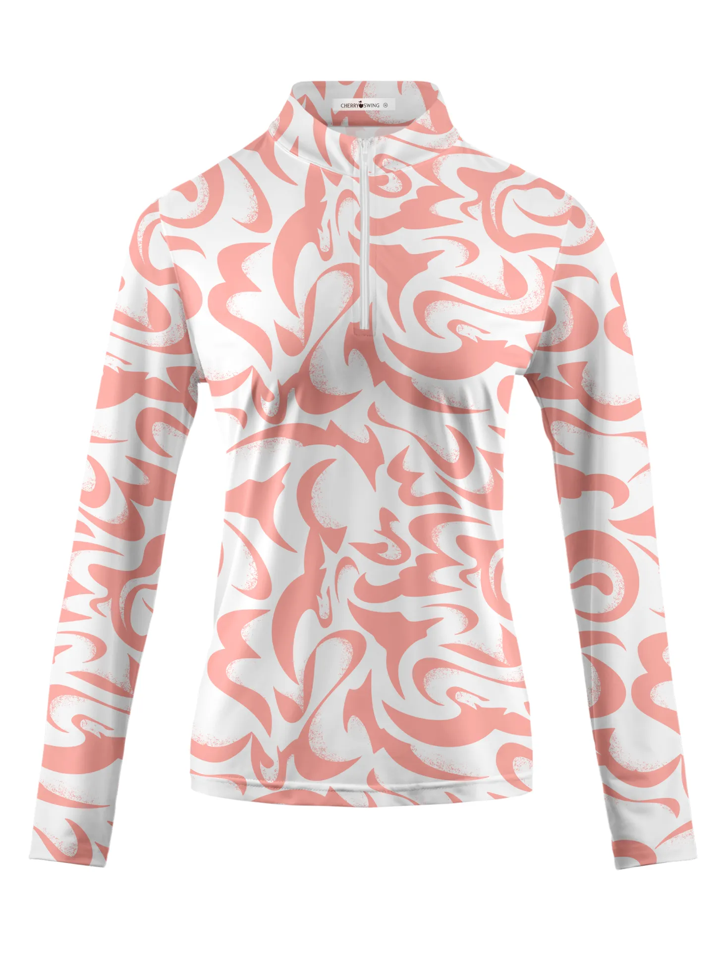 Cherryswing Women's Coral Bloom Abstract Long Sleeve Polo Shirt