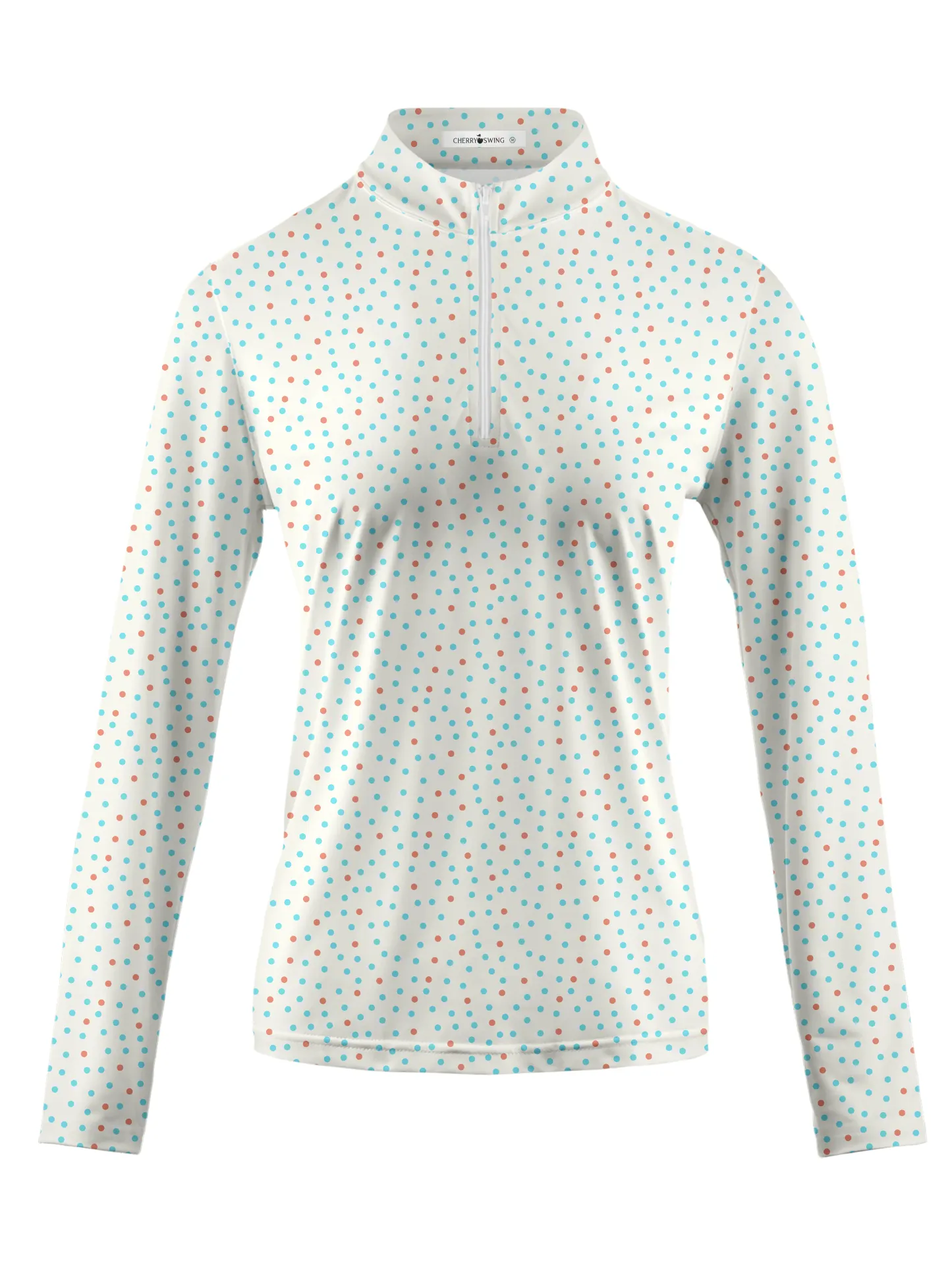 Cherryswing Women's Confetti Dots Long Sleeve Polo Shirt