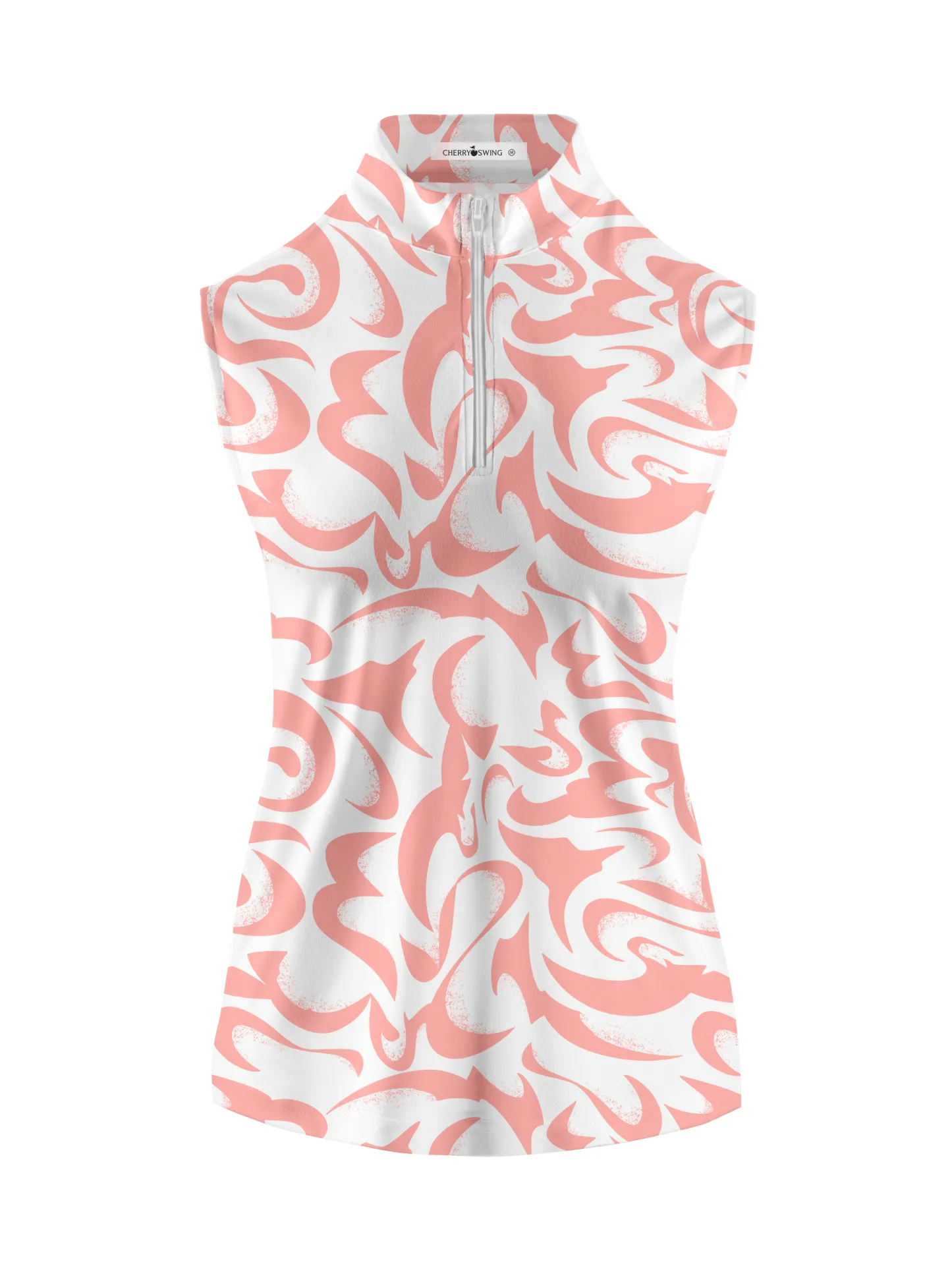 Cherryswing Women's Coral Bloom Abstract Golf Polo Sleeveless Shirt