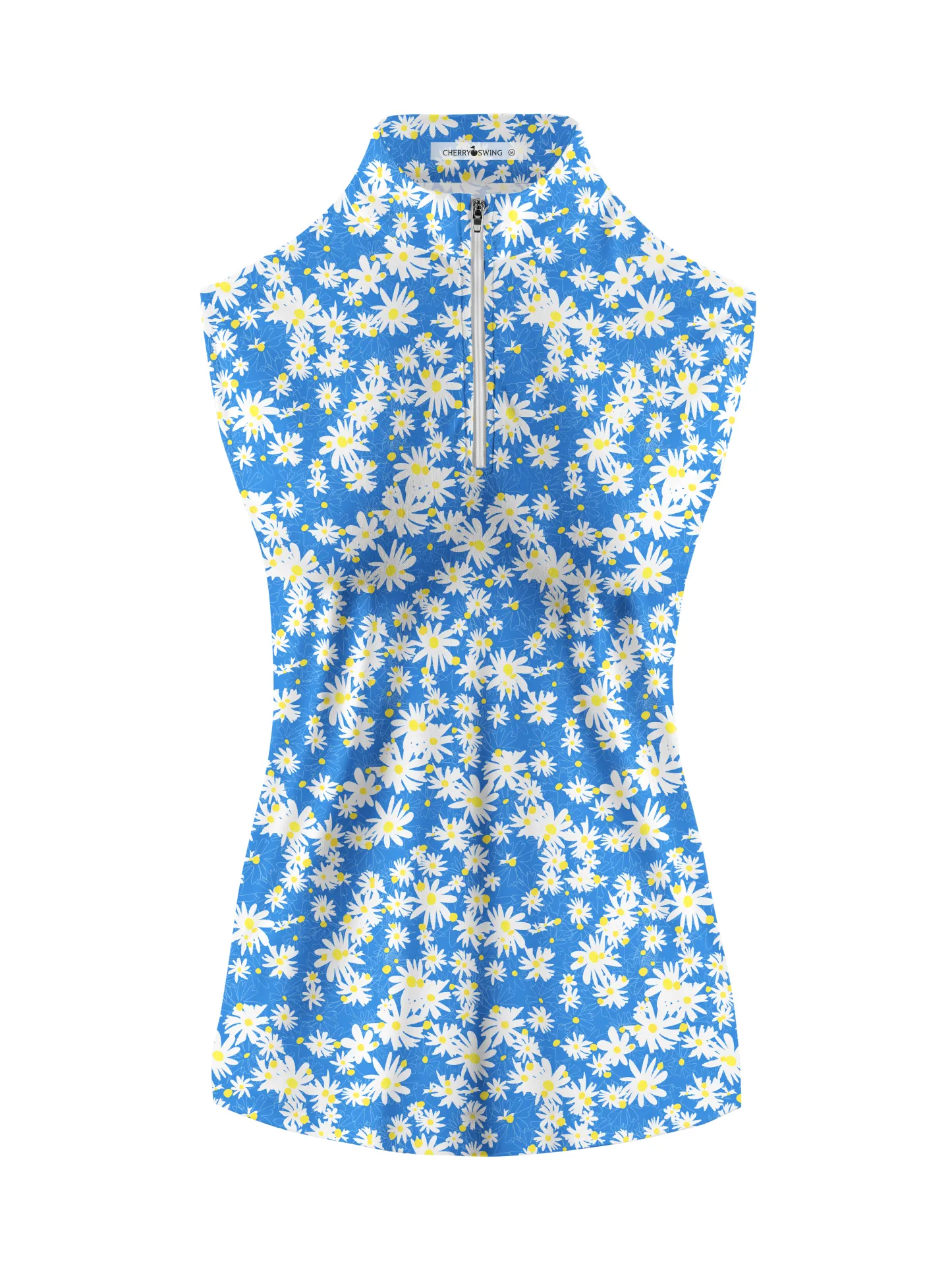 Cherryswing Women's Daisy Print Sleeveless Golf Polo Shirt
