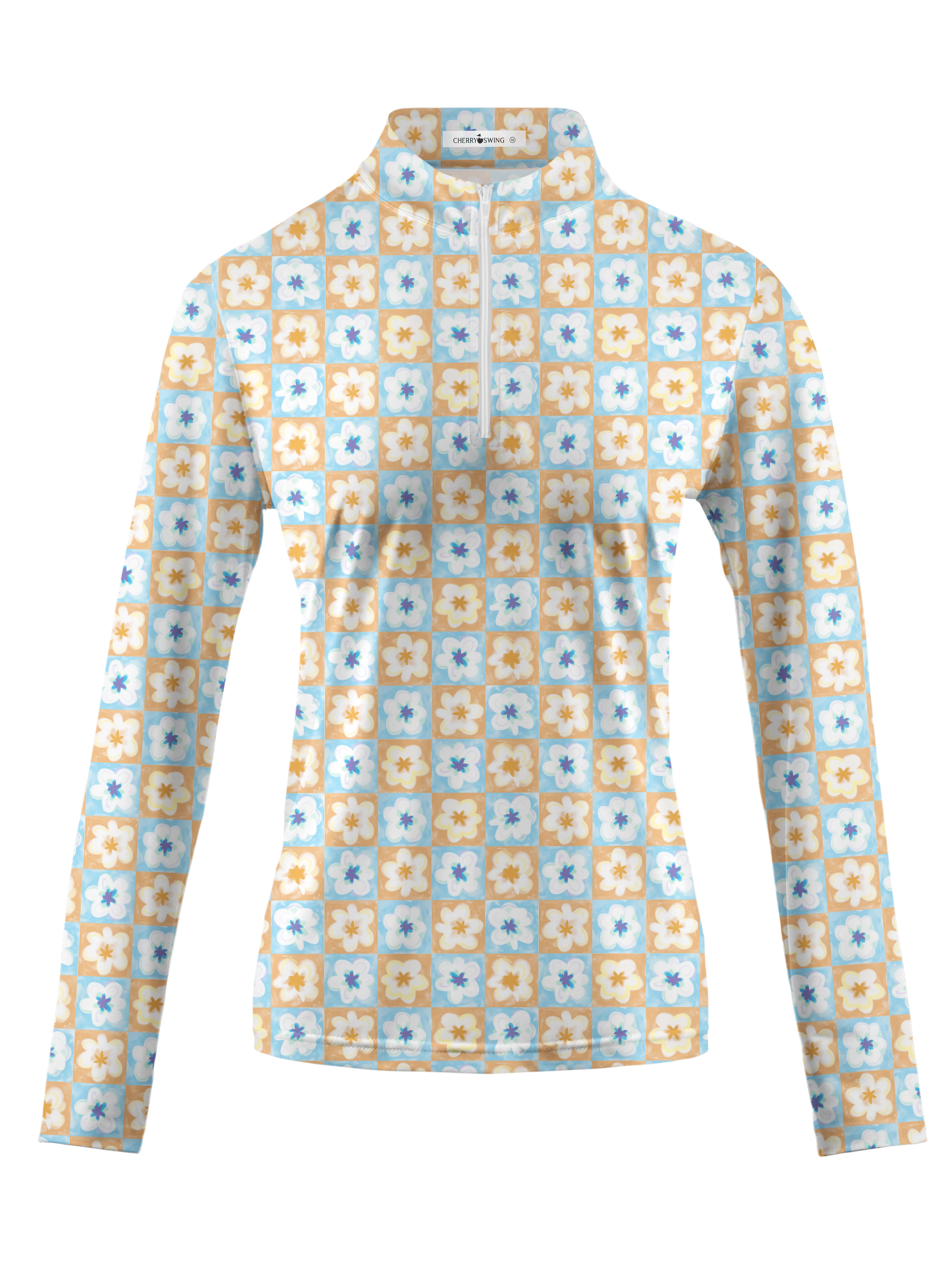 Cherryswing Women's Golf Bicolor Flower Long Sleeve Polo Shirt