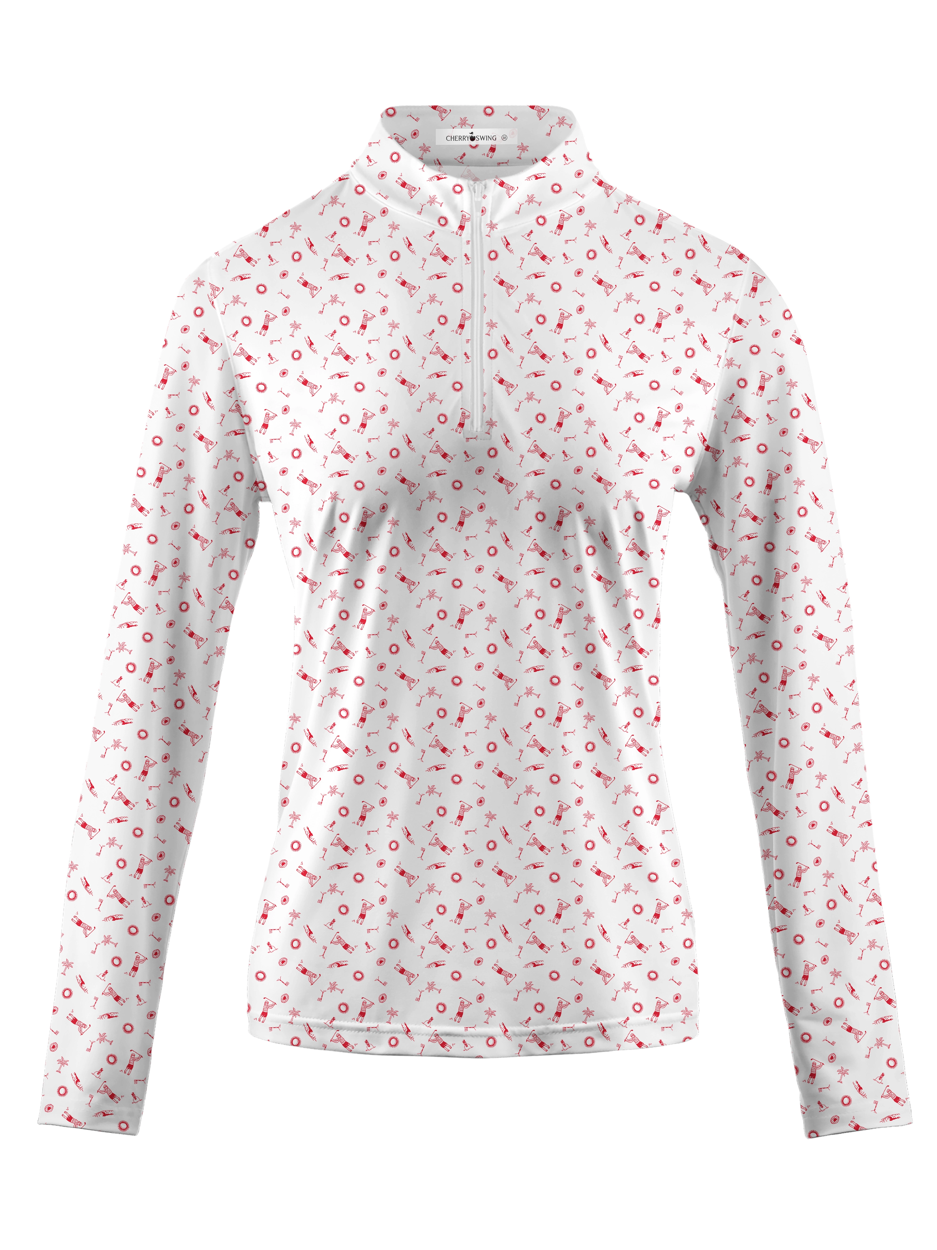 As golfers step onto the course, each hole represents the history of the sport, marked by a red flag and ball. Wearing shirts emblazoned with these symbols, golfers’ attire pays homage to the sport. As they play, the graphics on their shirts seem to come to life, reflecting the ups and downs of the game, while the flags on the greens quietly bear witness to every swing.