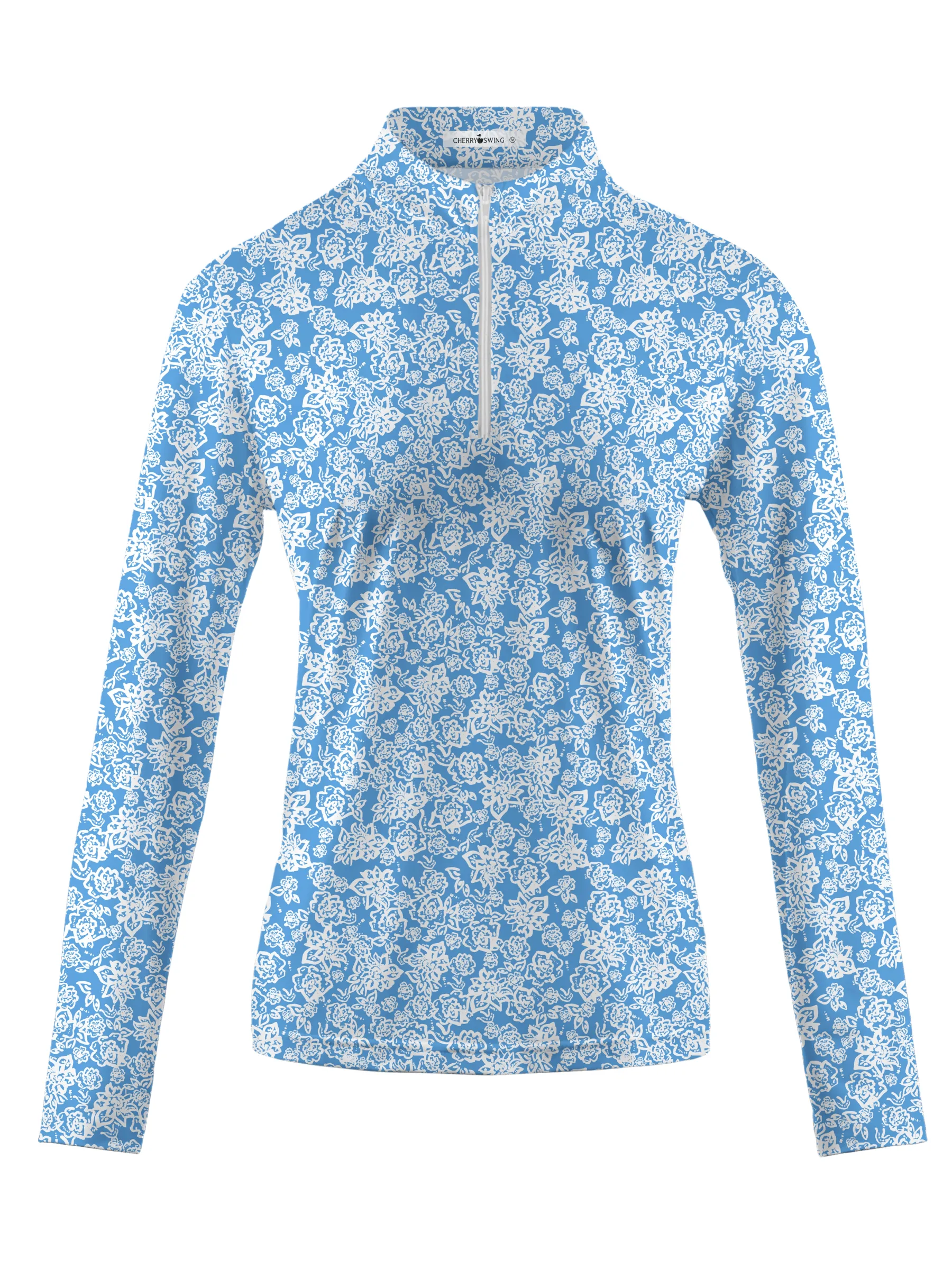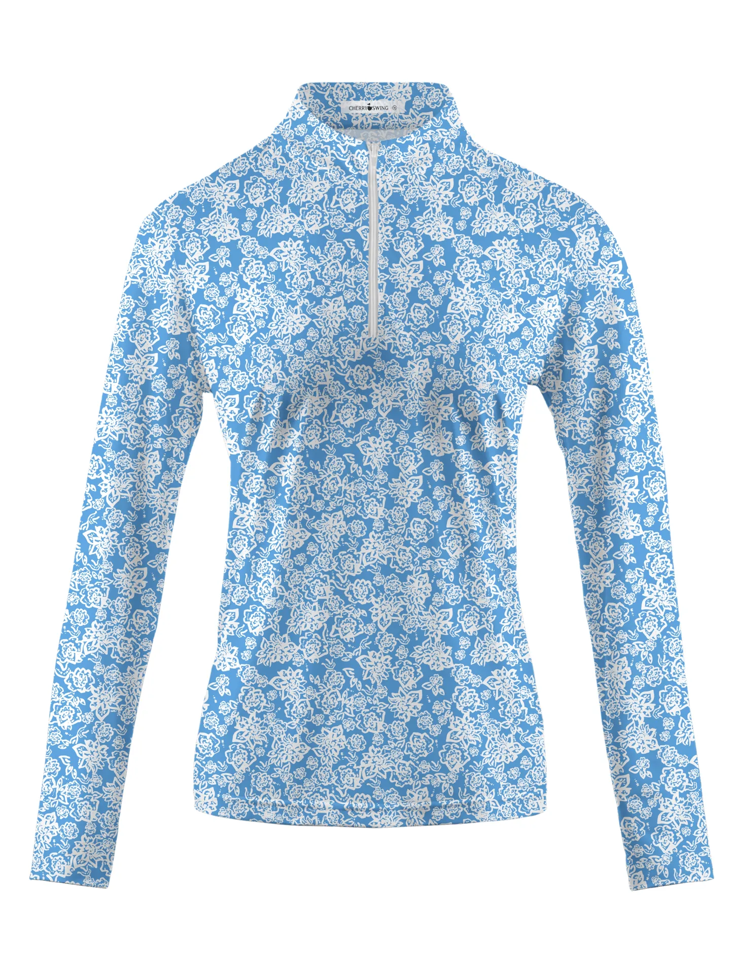 On a tranquil golf course, a golfer plays in a shirt emblazoned with an intricate blue and white floral pattern. Each of her swings creates a beautiful arc, with flowers dancing in the wind. As she swings, the wildflowers on the course seem to bloom more vividly, inspired by the design of her shirt. Celeste’s game is a silent sonnet in praise of the beauty of nature, with each hole a poem of tranquility and elegance.