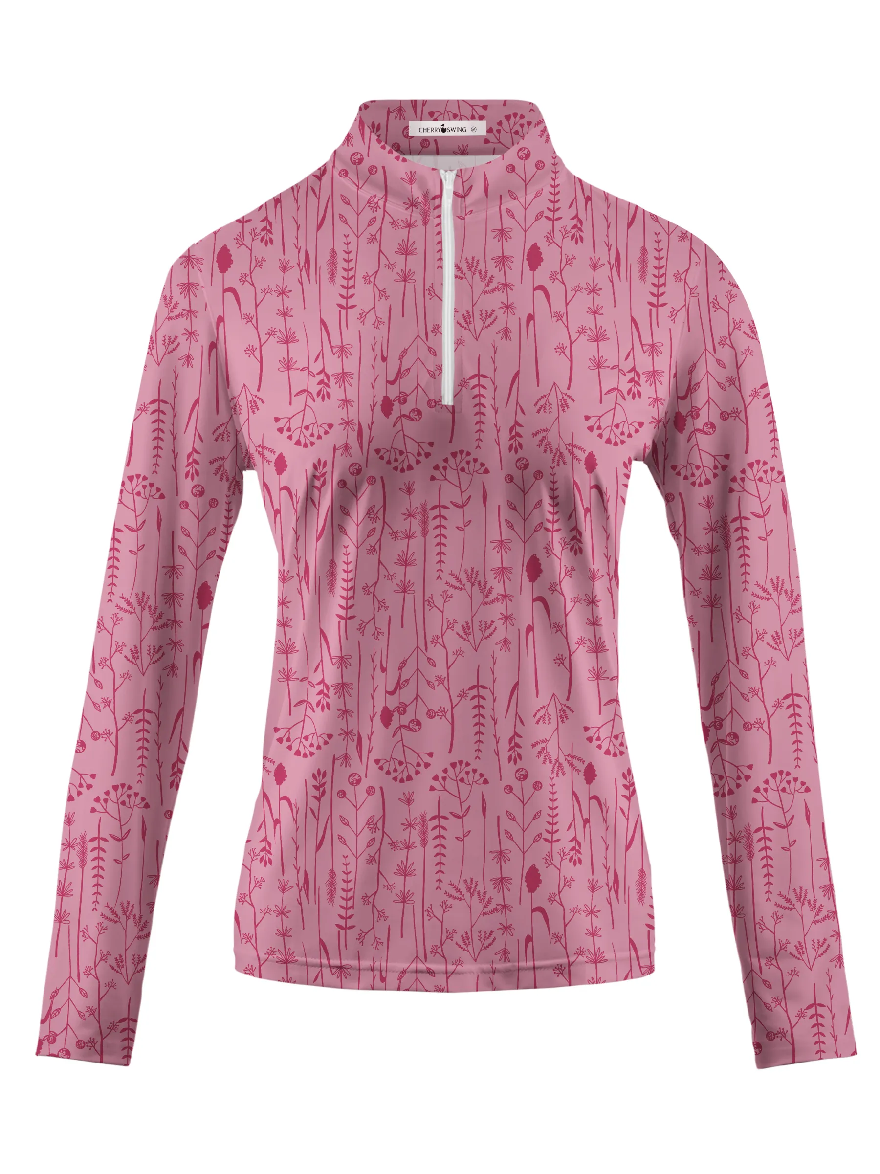 Cherryswing Women's Pink Fern Frolic Long Sleeve Golf Polo Shirt