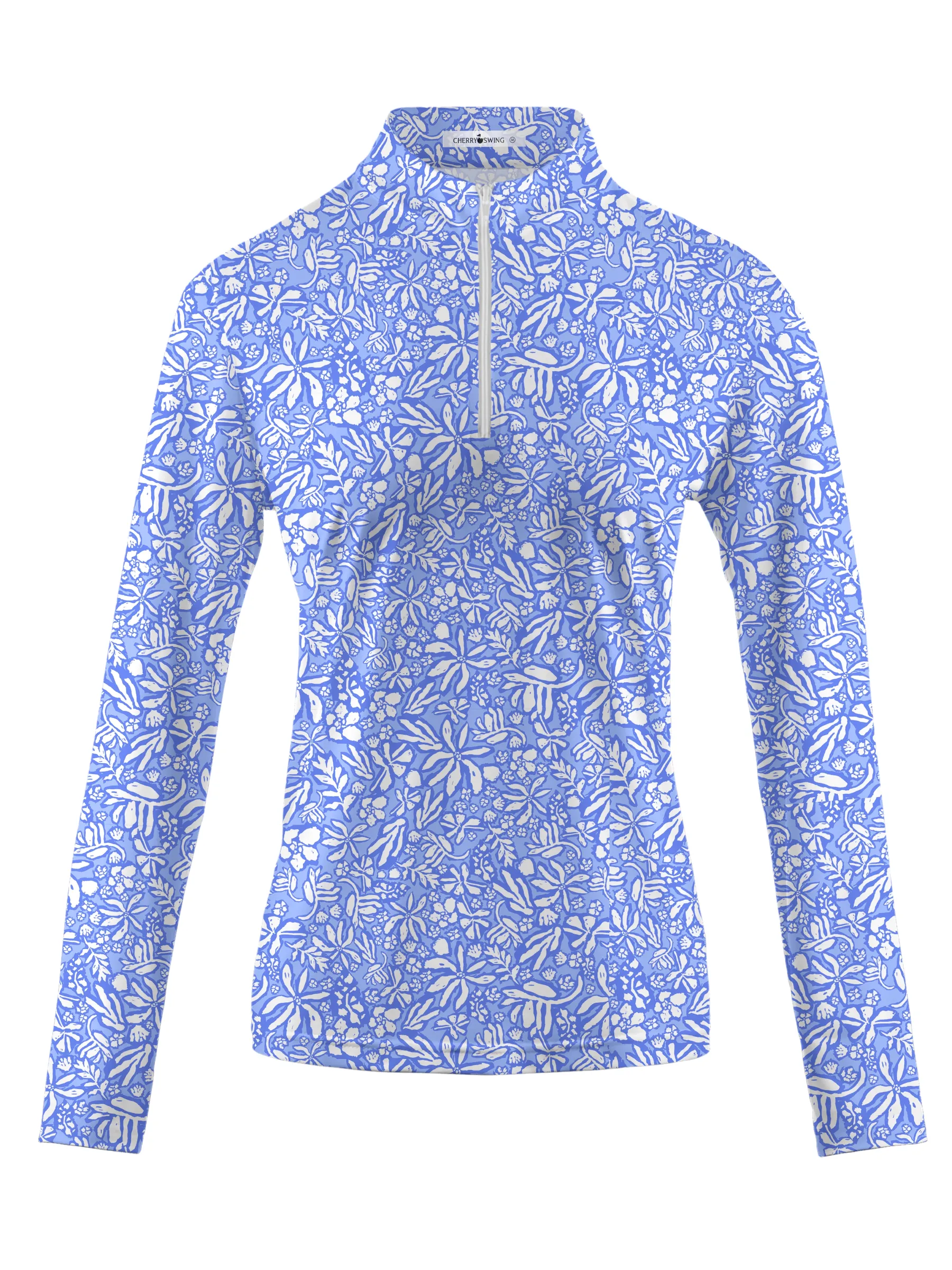 Cherryswing Women's Seaside Floral Golf Long Sleeve Polo Shirt