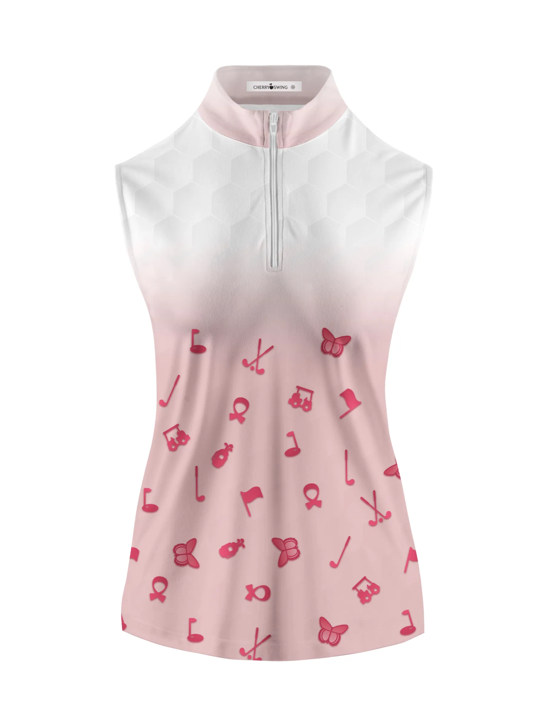 Cherryswing Women's Sleeveless Pink Gradient Golf Polo Shirt
